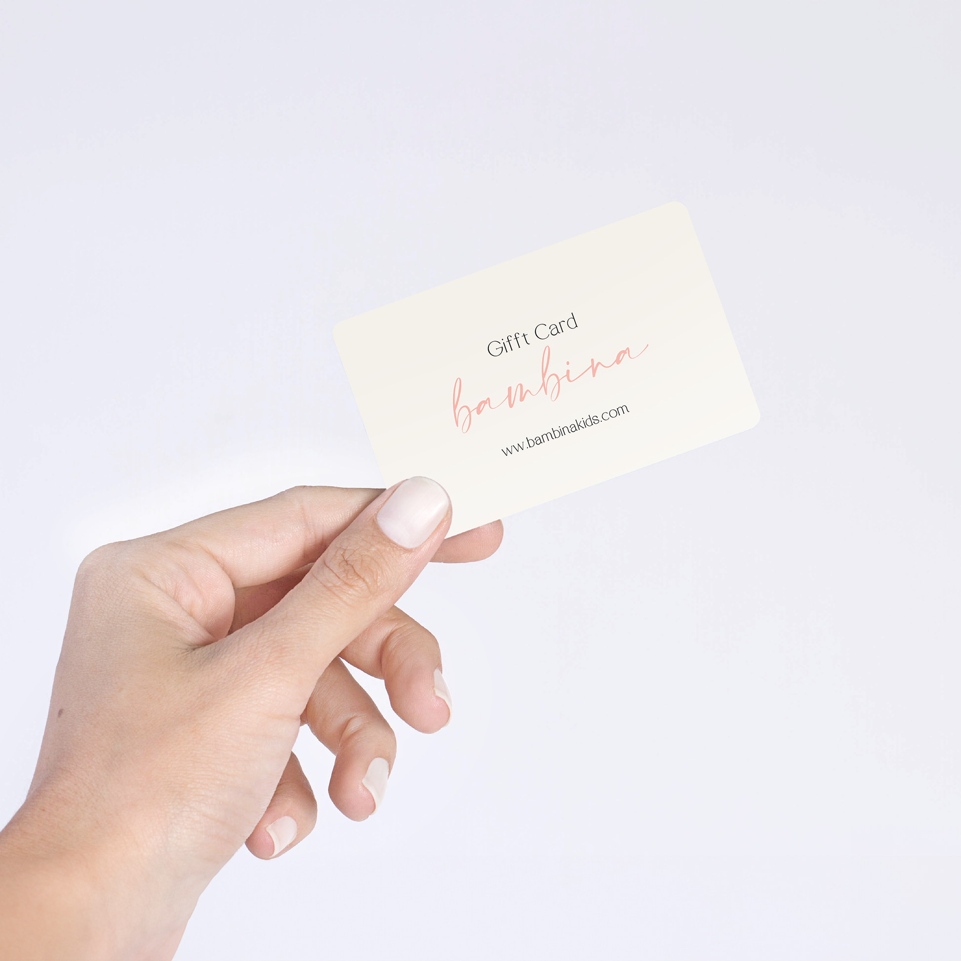 Sorprende a los pequeños con una tarjeta de regalo electrónica de Bambina Kids. Ideal para cualquier ocasión, permite elegir entre una amplia variedad de productos de alta calidad. ¡Haz cada momento especial con Bambina Kids!