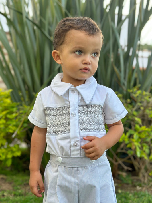 Trajecito gris con bordado de smock