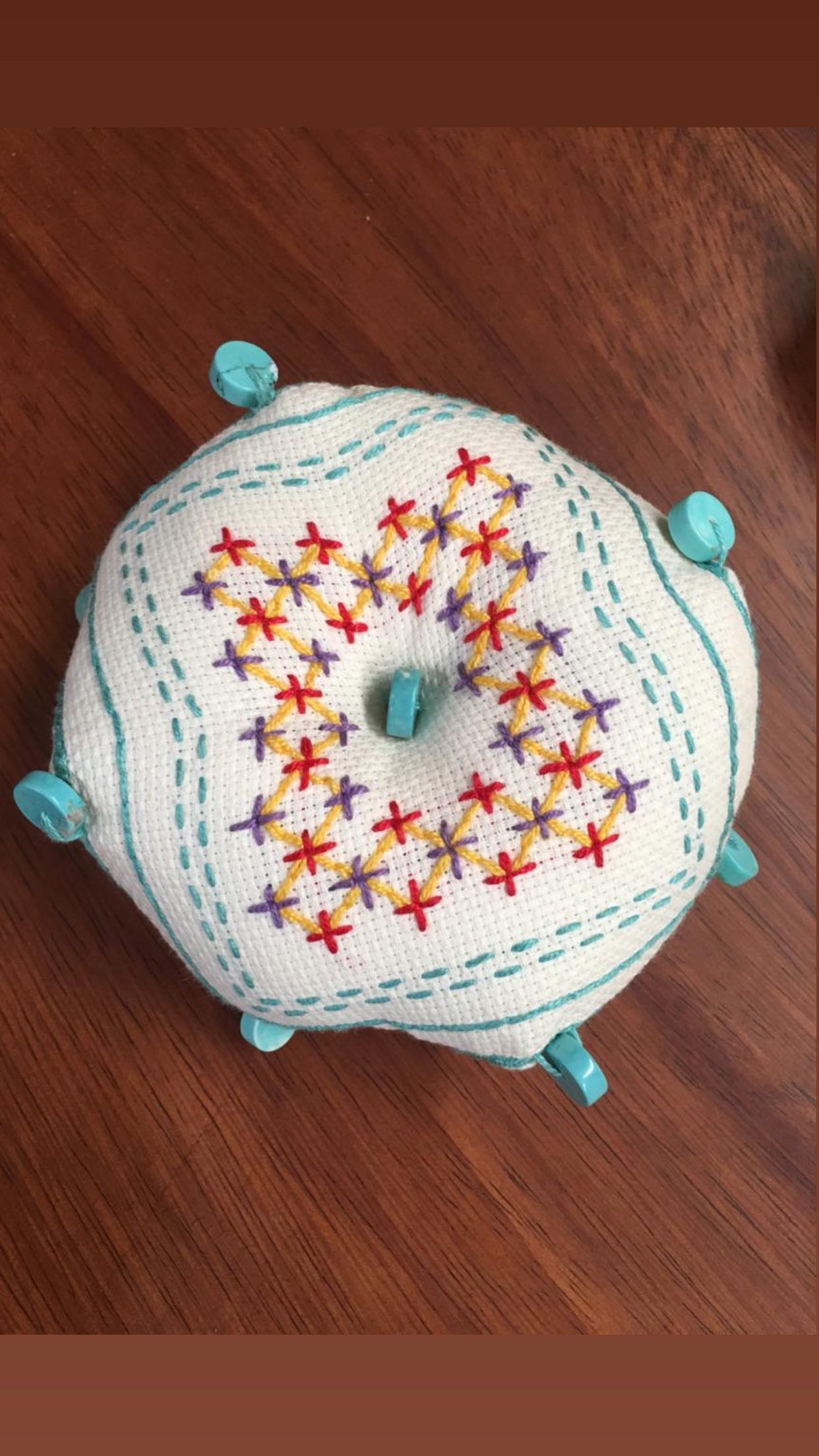Un alfiletero bordado a mano es una pieza pequeña y encantadora utilizada para guardar alfileres y agujas, y al mismo tiempo, añade un toque de elegancia y originalidad a cualquier espacio de costura. Ideal para regalar a alguien que le guste la costura.