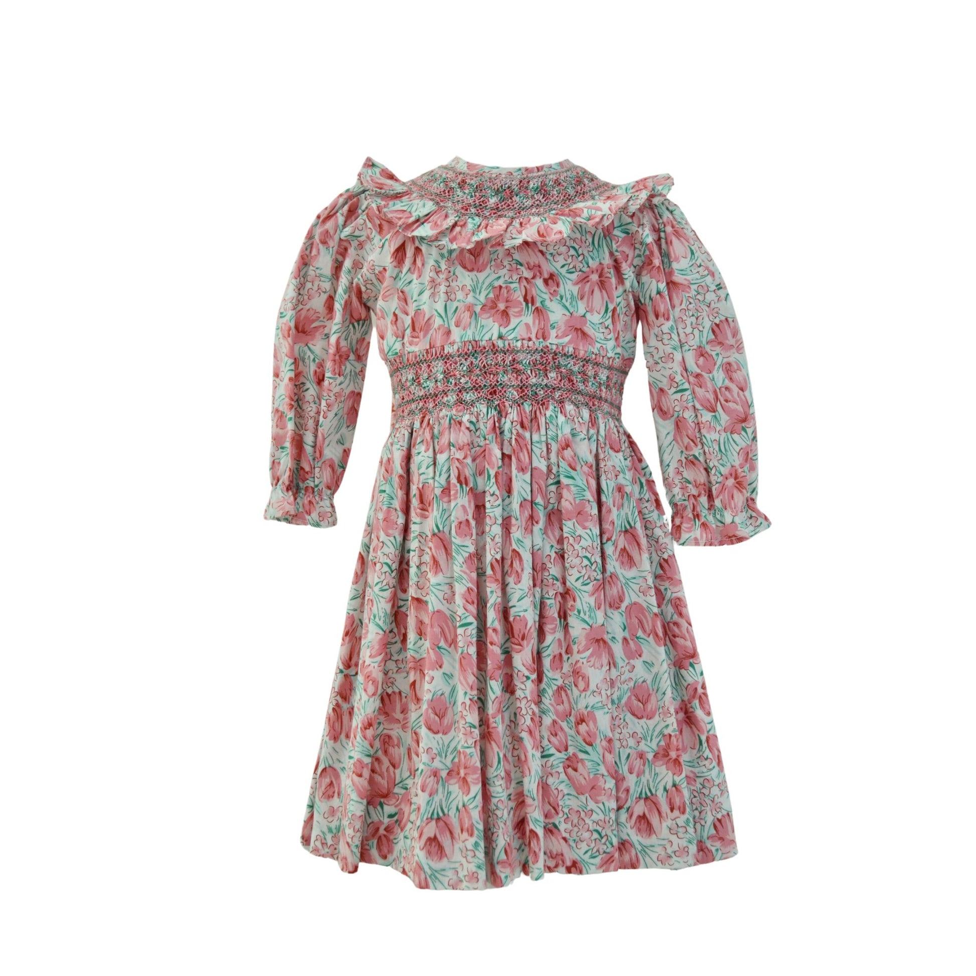 El Vestido Almudena en rosa floreado, adornado con un delicado bordado de smock en el cuello, brinda un toque de elegancia y encanto. Además, lleva un moño en la parte trasera, añadiendo un detalle adicional de sofisticación y ternura. Perfecto para ocasiones especiales como fiestas, bautizos o reuniones familiares, este vestido combina un diseño clásico con un estilo refinado.