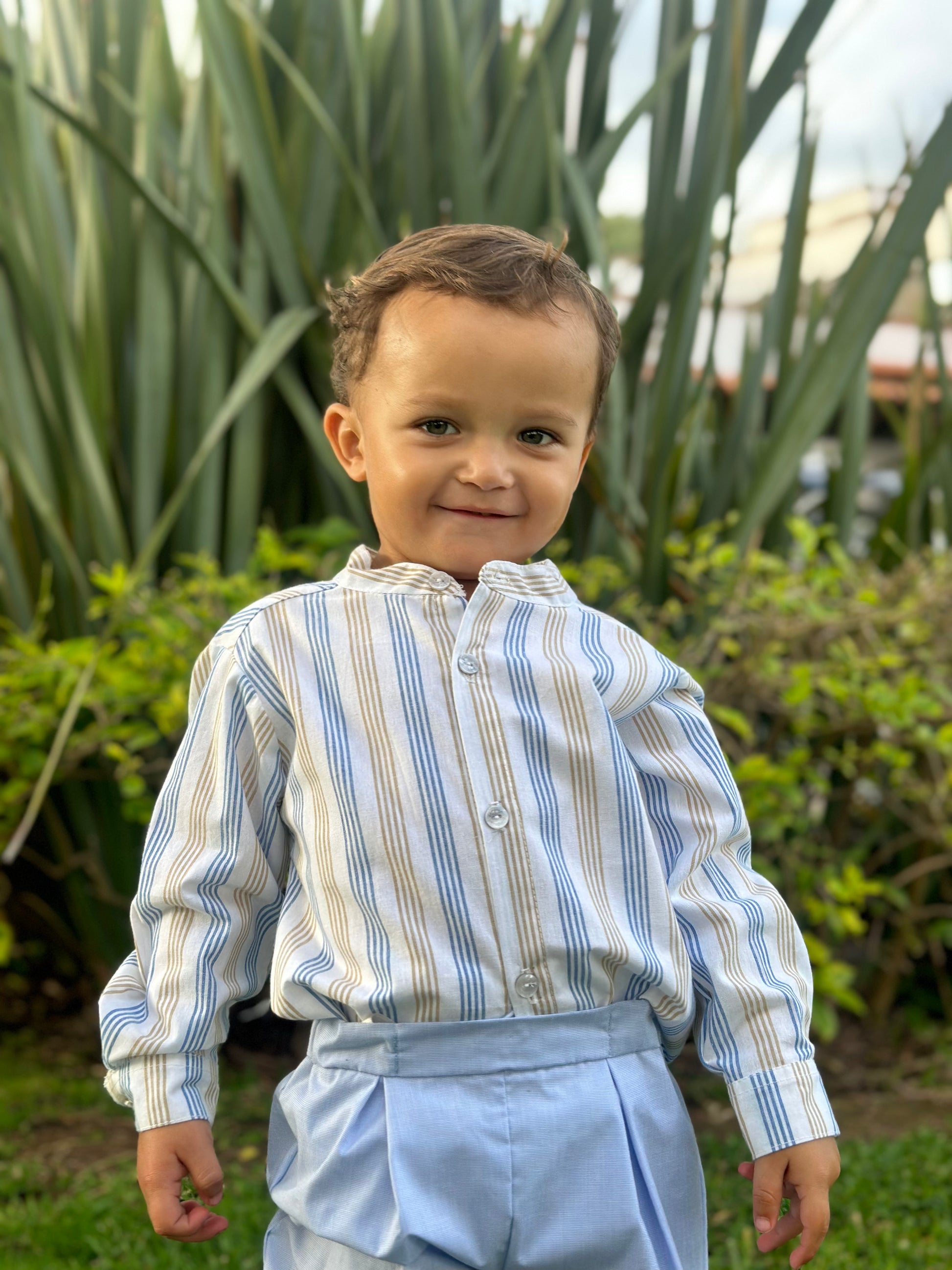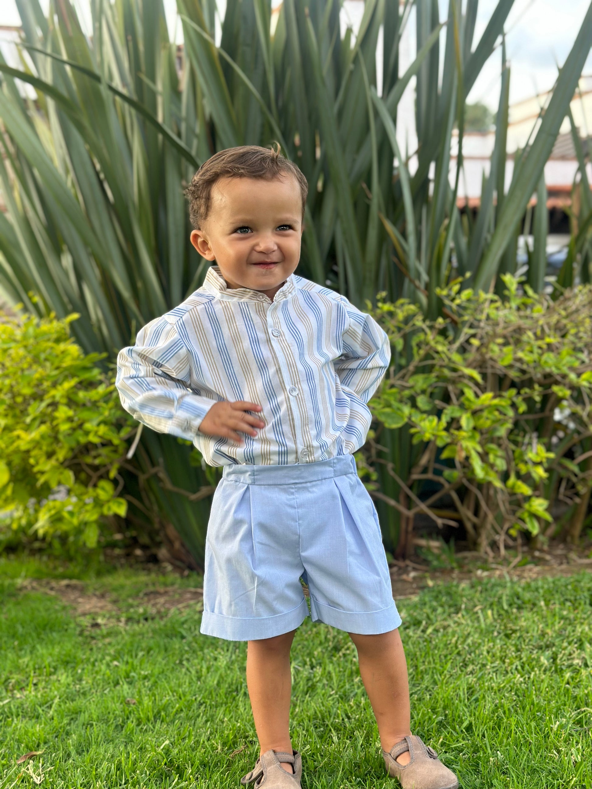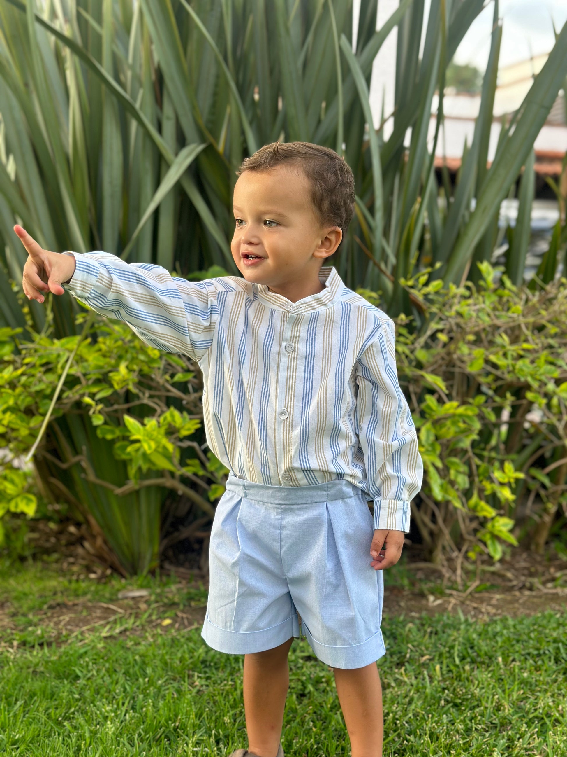 Hermoso trajecito con camisa en rallas y su short en tela 100% algodón.