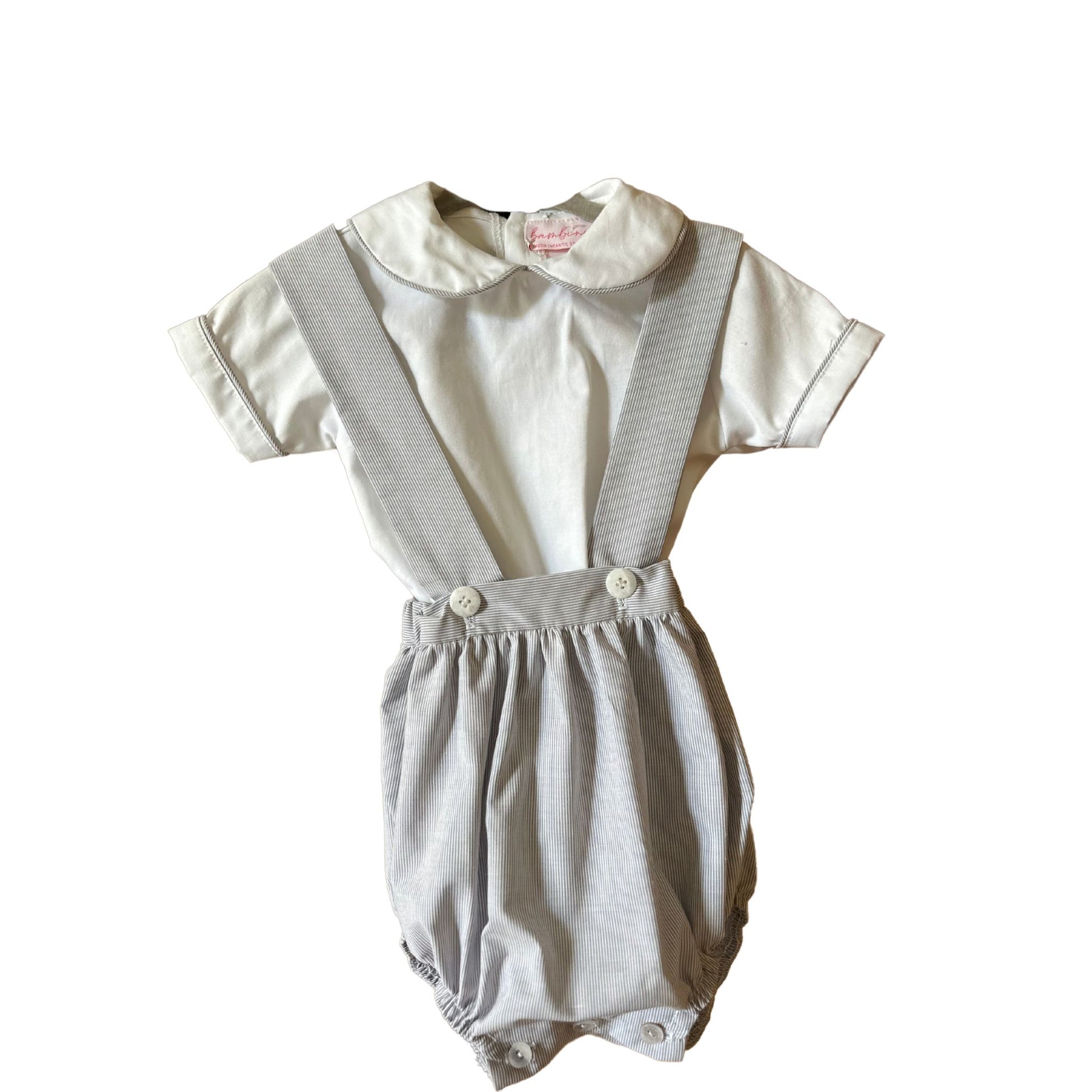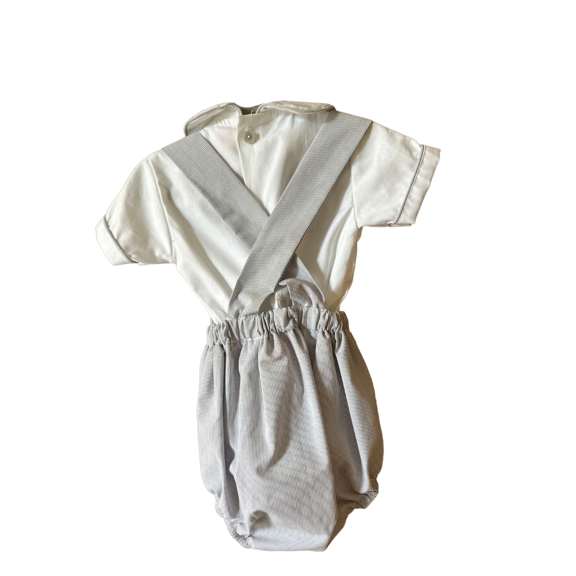 Conjunto adorable para bebés en tonos gris. Este trajecito incluye short con tirantes y una camisa a juego, perfectos para cualquier ocasión. Hecho con materiales cómodos y de alta calidad para mantener a tu pequeño elegante y confortable todo el día.