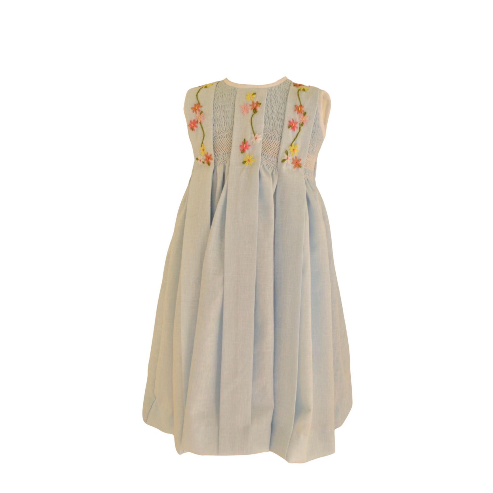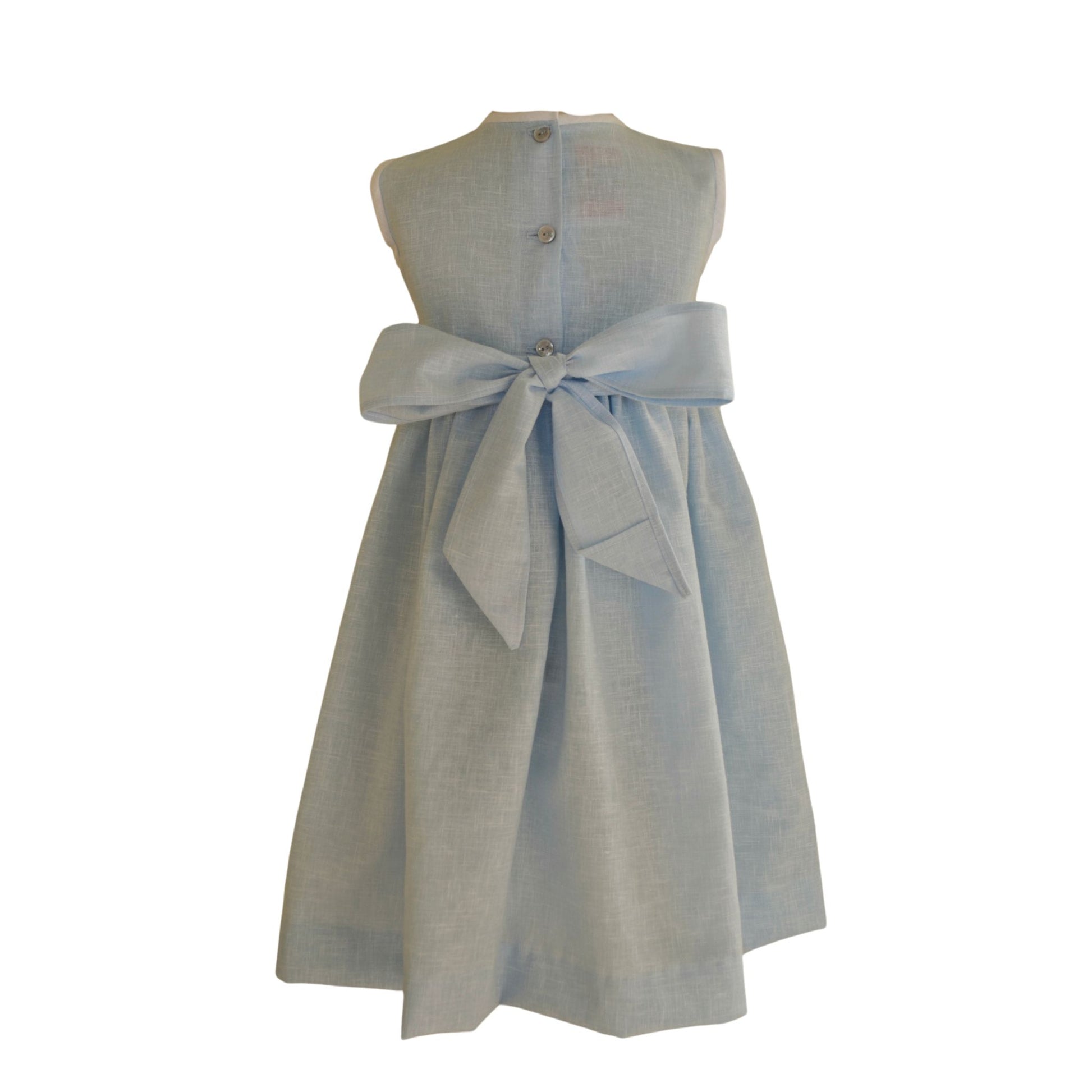 El vestido Aurora con bordado de smock es una prenda encantadora y delicada. Confeccionado en lino azul, presenta un elegante bordado de smock. Su diseño fluido y a medida garantiza comodidad y un ajuste favorecedor, haciendo de este vestido una opción ideal para ocasiones especiales o eventos formales.