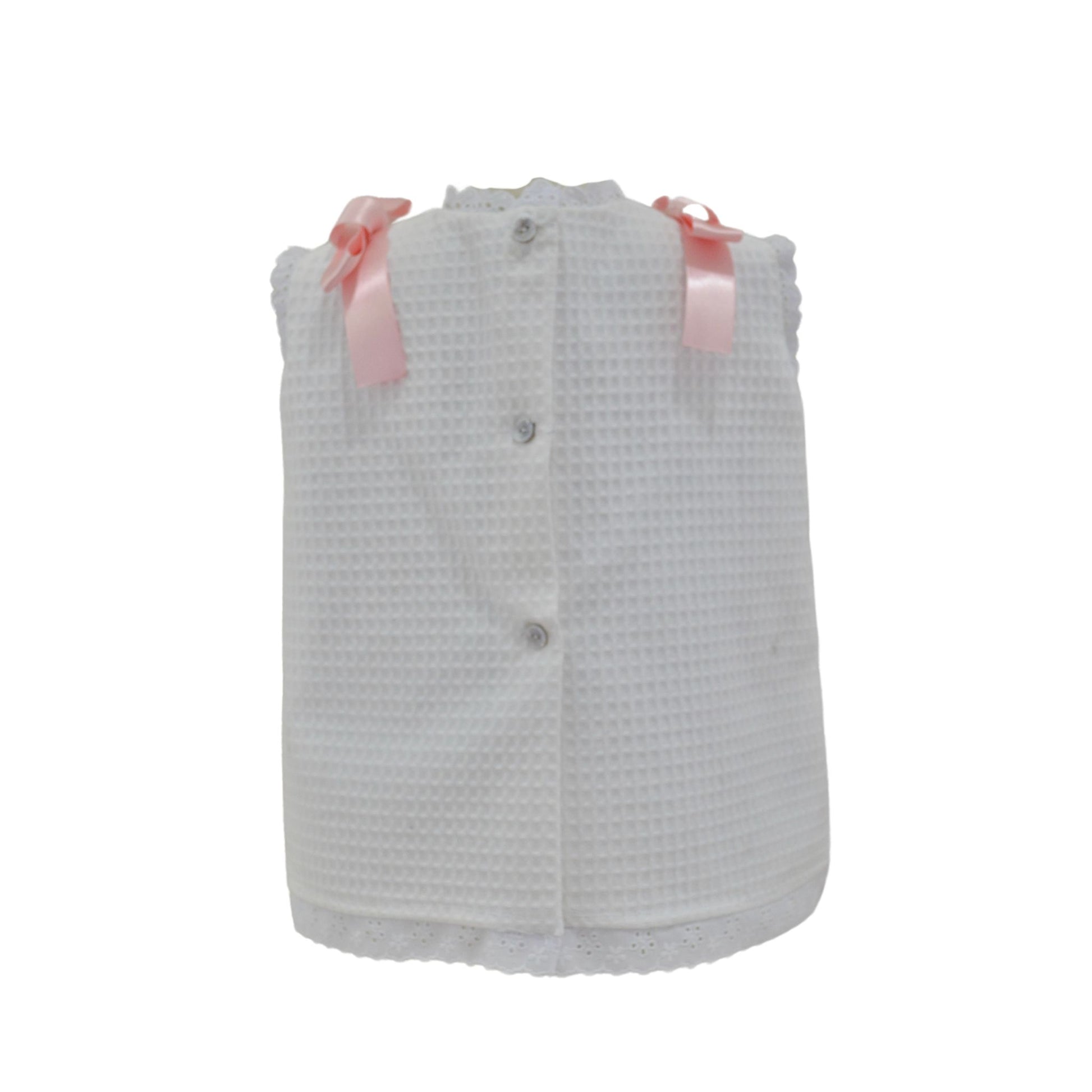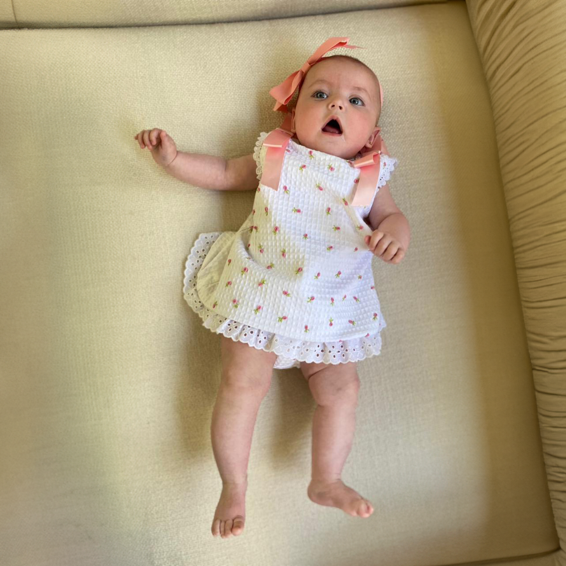 Vestido Donatela Roccoco con calzón bordado y moños rosas