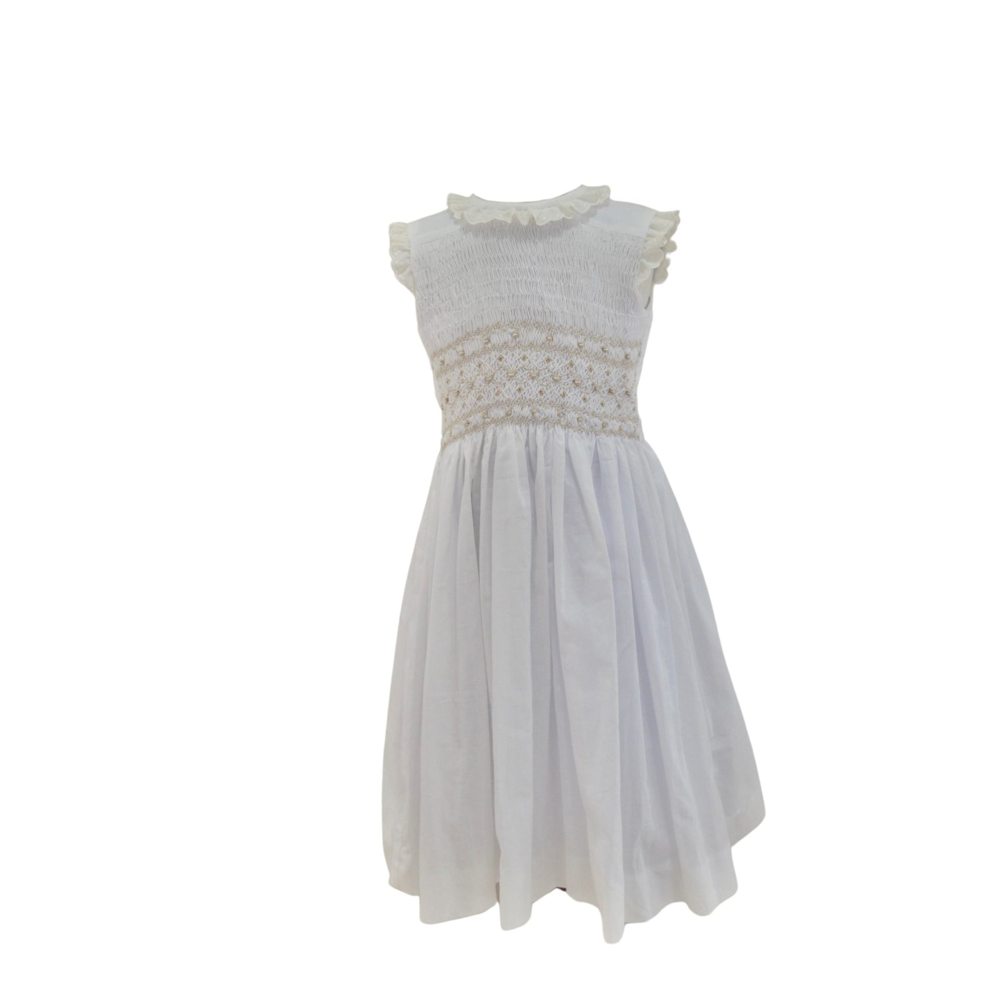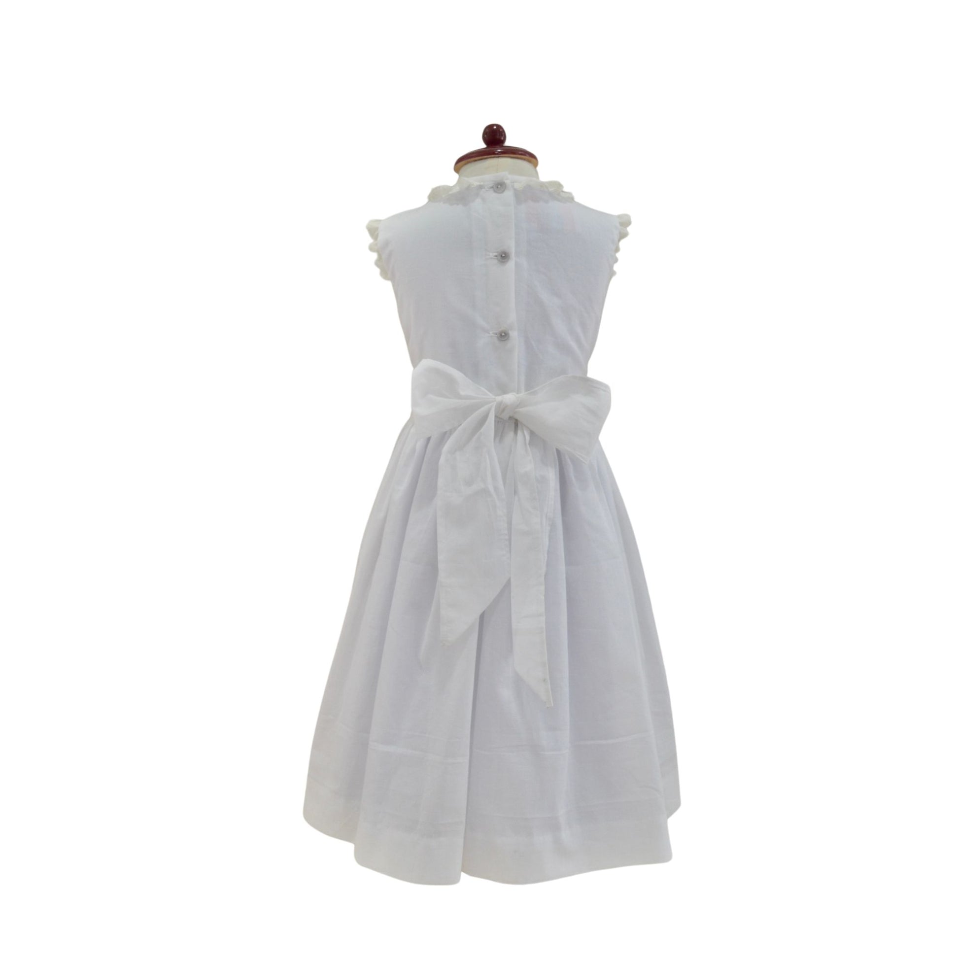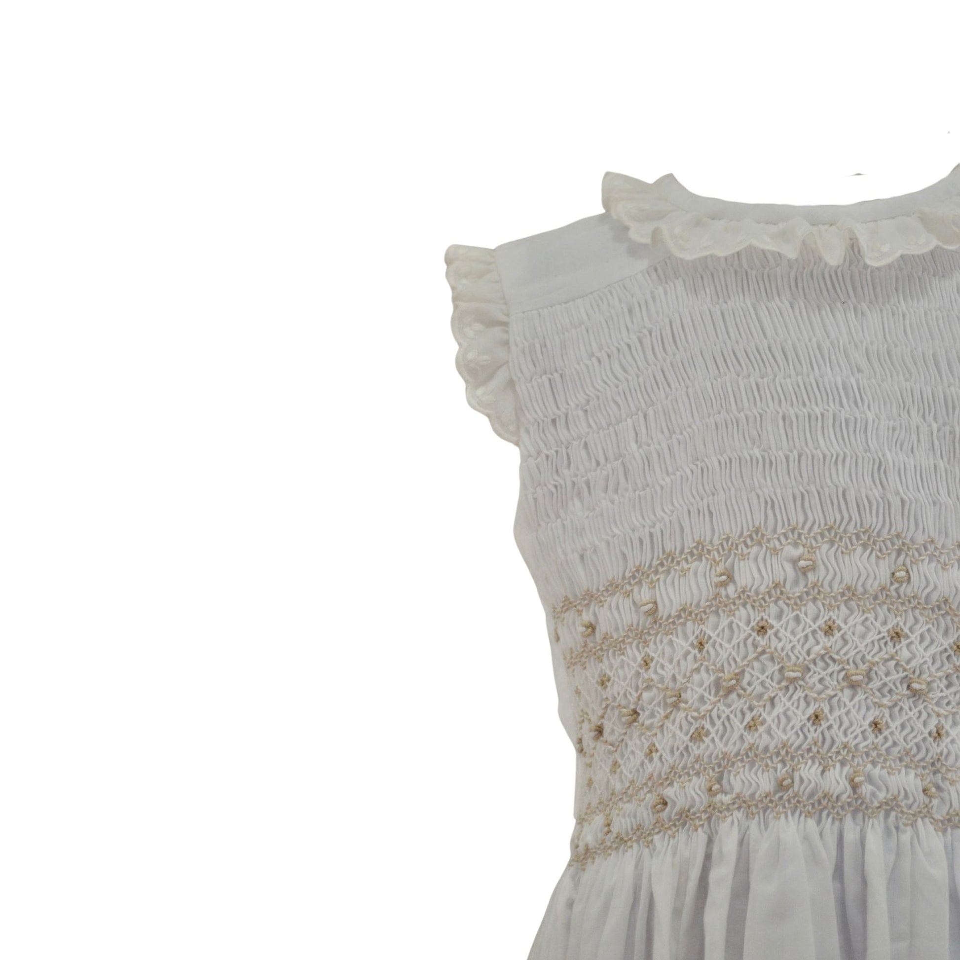 Vestido leonor esta Confeccionado con tela 100% algodón, ofrece comodidad y frescura durante todo el día. Su bordado de smock y tira bordada en tonos claros añaden un toque de dulzura y elegancia.