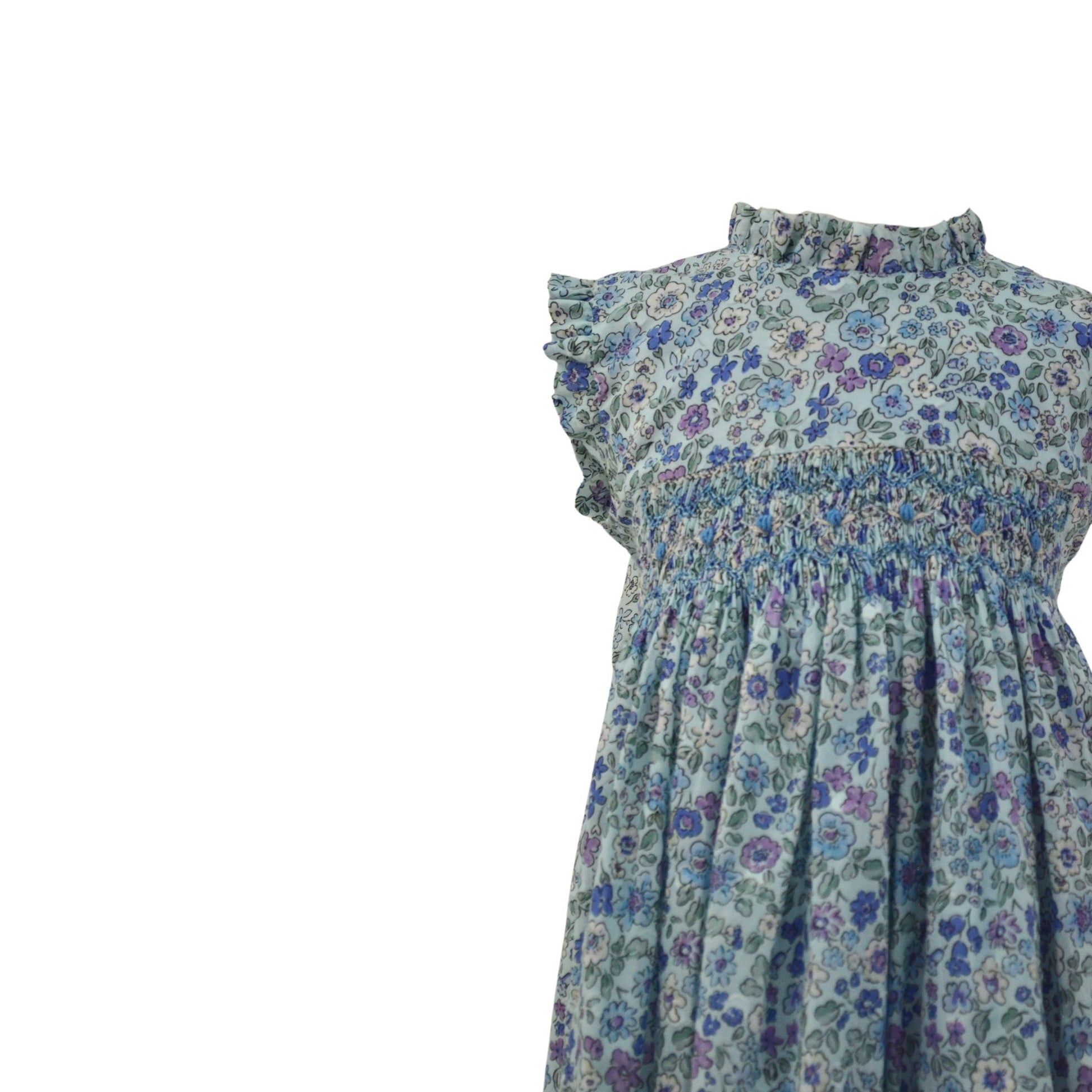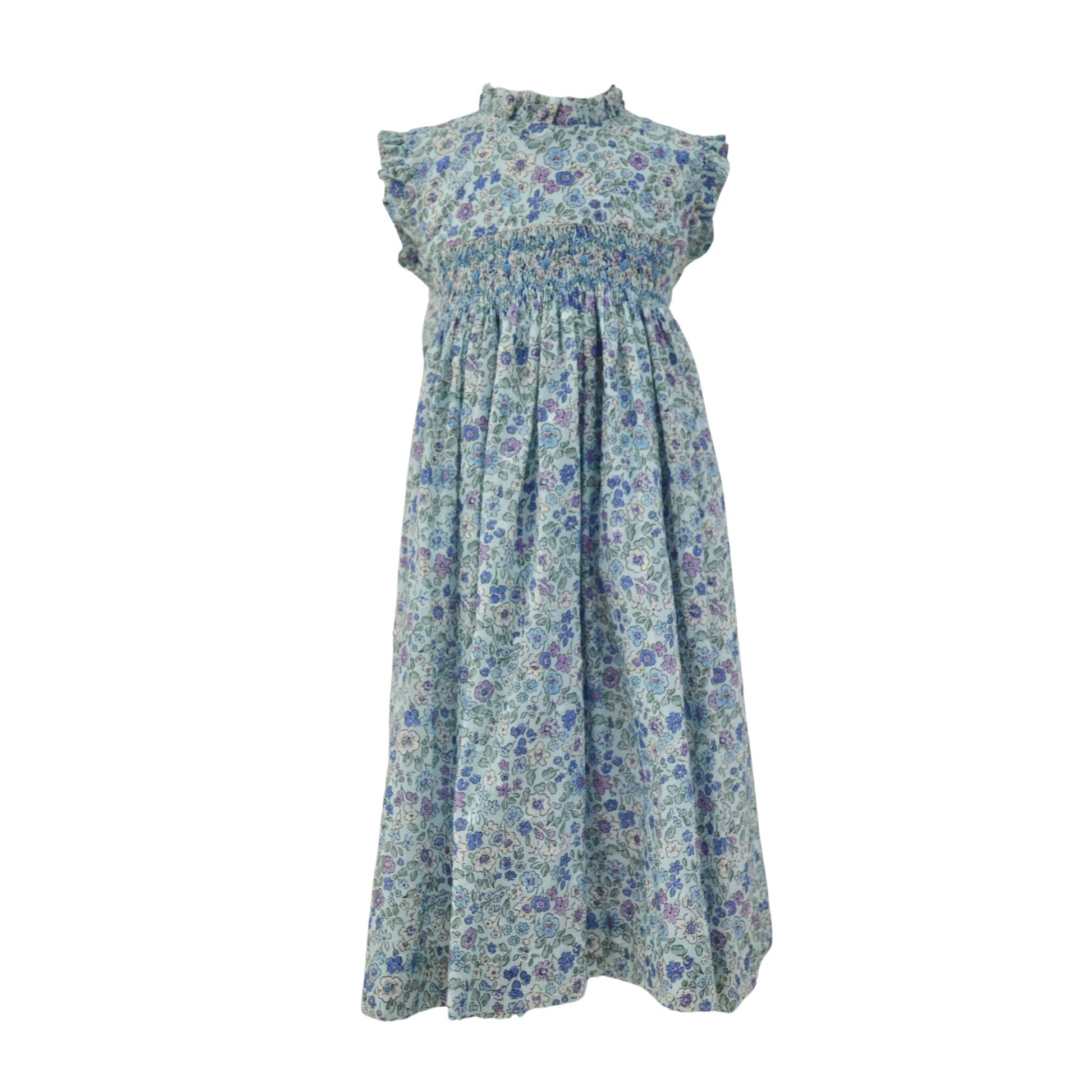 El Vestido Gisela presenta un delicado bordado con técnica de smock y una suave tela de algodón con un encantador estampado floral y con escarola. Confeccionado con 100% algodón, ofrece una comodidad y estilo inigualables.